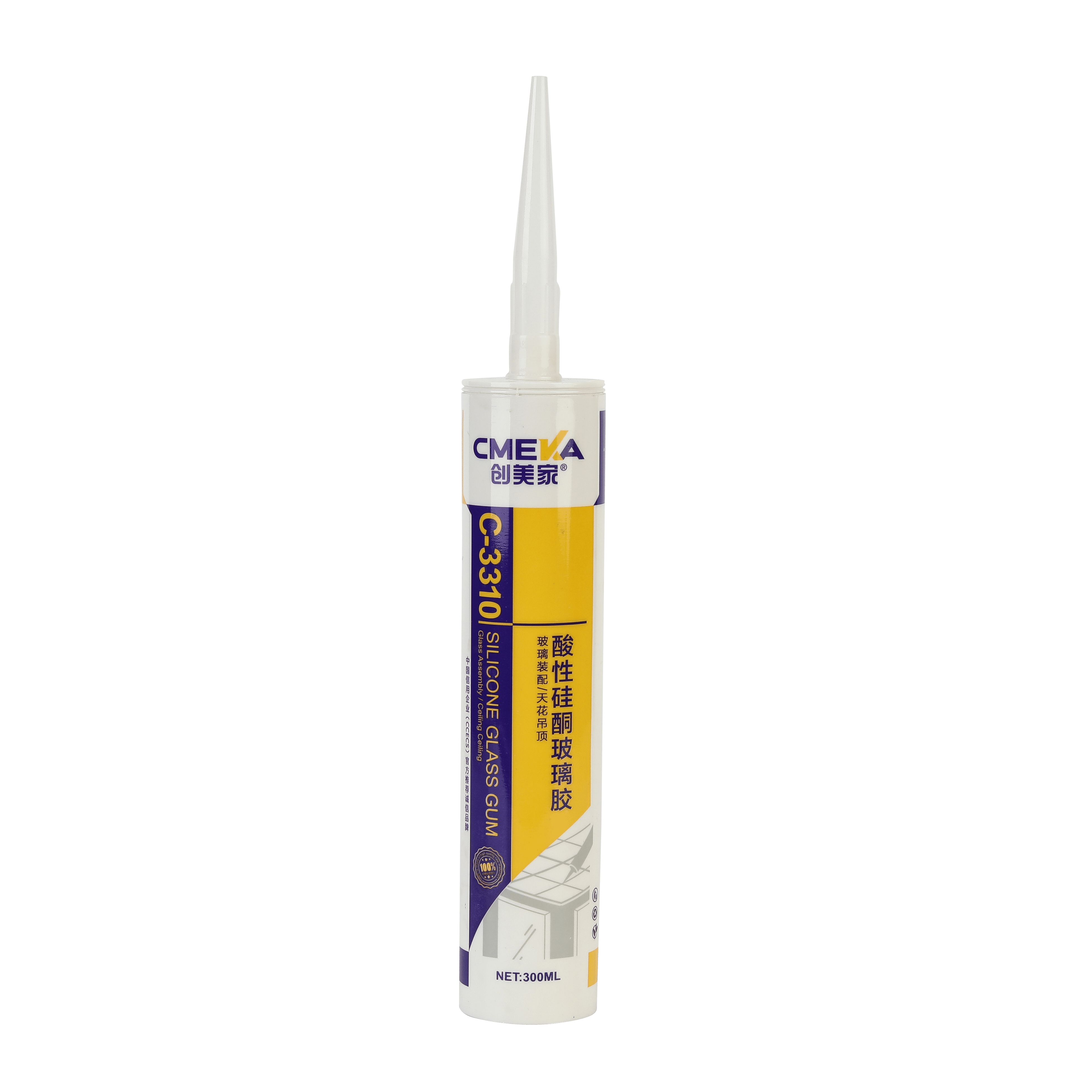 1 創美家C-3310 酸性硅酮玻璃膠單組份、醋酸型、室溫固化硅酮玻璃膠,使用方便。