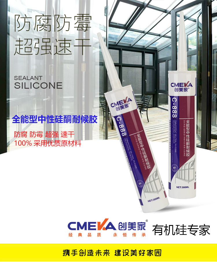 1、創美家C-888為單組份、室溫固化硅酮幕墻門窗工程膠。